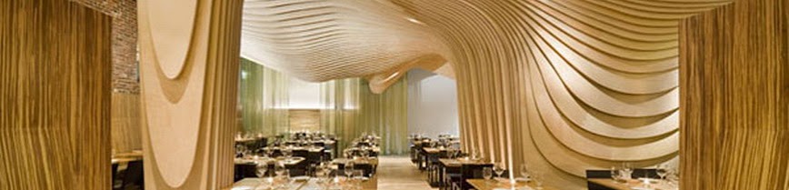Banq Restaurant which is located in the old Penny Savings Bank (1375 Washington Street, Boston, MA) under the old banking pp is Designed by DA’s Office . This restaurant has a very unique design, and I’m pretty sure that every guest will remember the design of this restaurant, and of course talk about it. The walls and ceiling are decorated with elements that create a wave of unique pieces of three-quarter-inch birch plywood adhered together in a situation which equates to a big problem, only one possible place for each unit, defined continuously members. Under the ceiling, the performance aspect of a warm dining room is a myth in the bamboo forests and to strengthen the playing relaminated Striping affects the entire space. Striations of land, furniture, and ceiling all conspired to create a total effect, embedded visitors to the grain from the restaurant. DA’s office made it through any structural problems and create a beautiful room of an abandoned building. This is an example of how inspired design can make a silk purse from a sows ear.